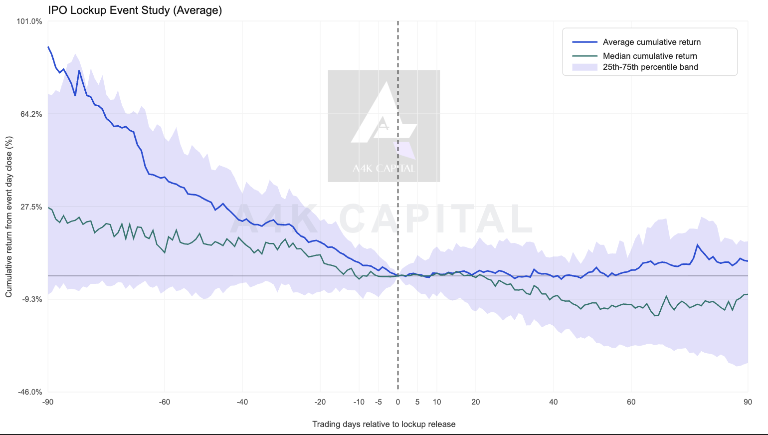 This surge in potential selling often pressures prices lower, especially if valuations remain elevated after initial IPO hype. As the data suggests, many stocks drift down into and after the lock-up release.